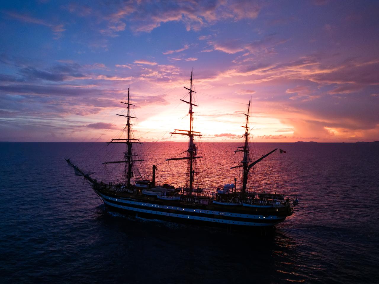 La nave fue bautizada en honor del navegante florentino Amérigo Vespucci, a quien se debe el nombre del continente americano. Se trata de un buque escuela de la Marina Militar de Italia, construido en 1930, en el cual, durante casi un siglo se han formado todos los cadetes de la marina militar italiana. Su actual capitán, Giuseppe Lai, describió que el Amérigo Vespucci es el navío más antiguo de la marina italiana y se encuentra circunnavegando el mundo en el “Tour Mondiale 2023-2025” surcando los mares de los 5 continentes.