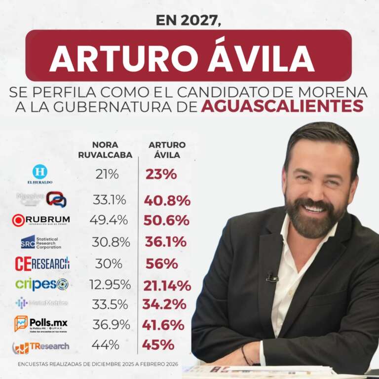 Arturo Ávila arrasa en encuestas y lidera preferencias rumbo a la gubernatura de Aguascalientes