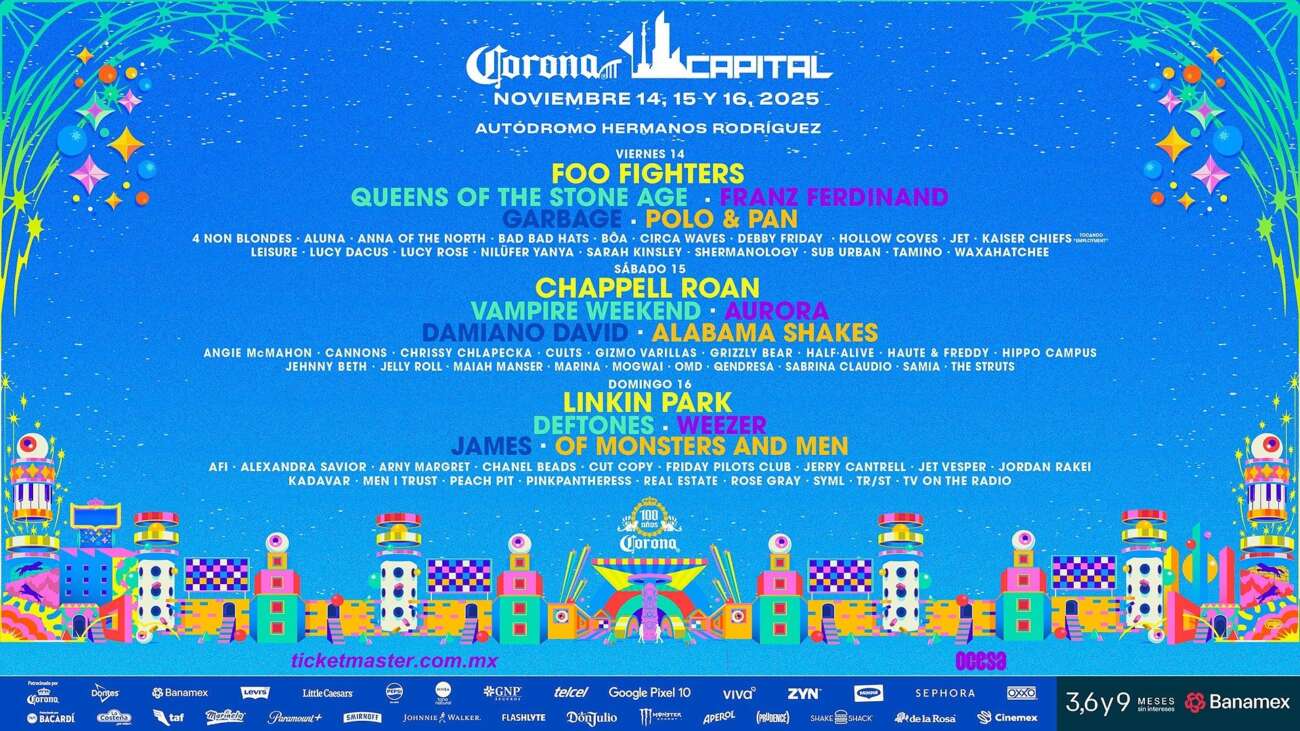 Corona Capital es el festival anual de música internacional más importante de México organizado por OCESA en la Curva 4 del Autódromo Hermanos Rodríguez de la CDMX desde 2010. Además de la música, el festival destaca por su enfoque en la sostenibilidad, contando con la certificación internacional ISO 20121, además, año con año promueve la inclusión y accesibilidad, ofreciendo servicios para personas con discapacidad auditiva o movilidad reducida. Billie Eilish, The Strokes, Arctic Monkeys, My Chemical Romance y Paul McCartney son algunos de los artistas que han encabezado sus ediciones anteriores y este 2025 promete entregar una edición inolvidable de la mano de headliners como Foo Fighters, Chappell Roan y Linkin Park