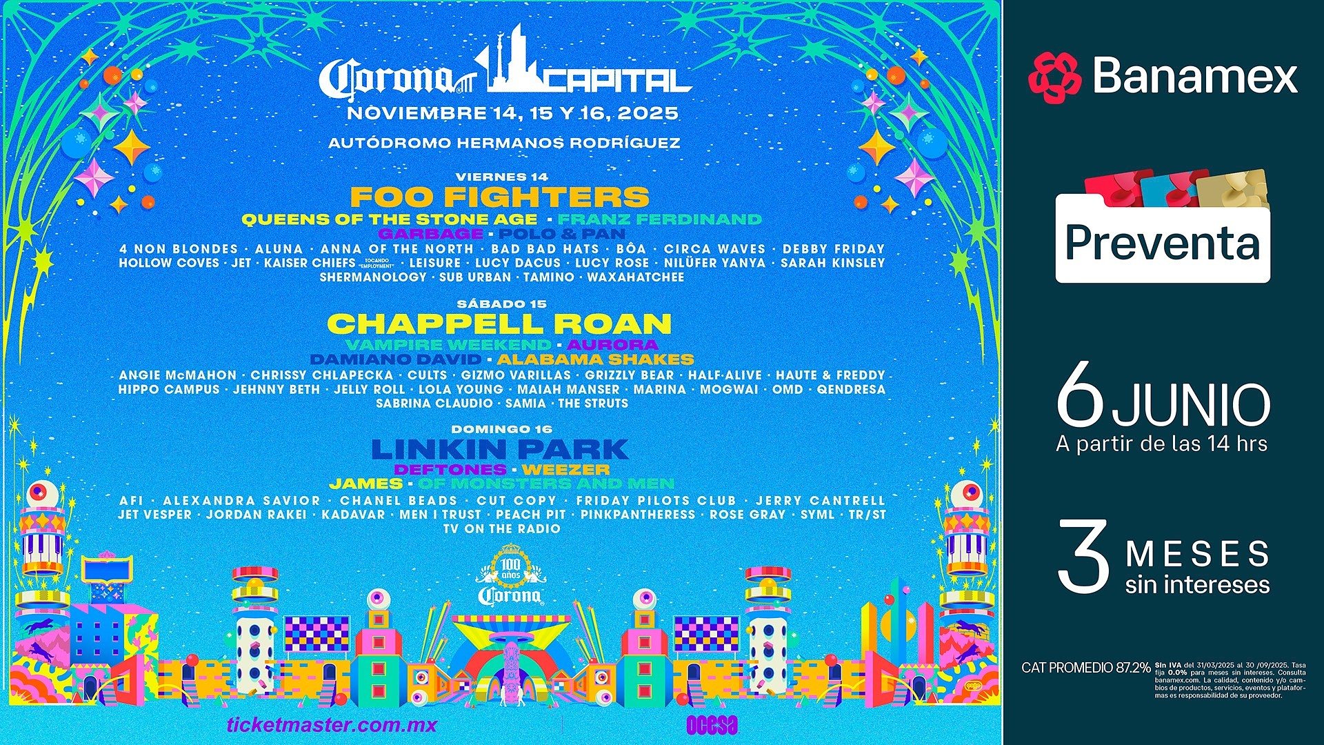 En 2025, Corona, la icónica marca de Grupo Modelo cumple 100 años de conectar a México con lo mejor del mundo. Un siglo de celebrar lo que somos, de encender momentos inolvidables que se vuelven memorias, y de llevar nuestra cultura a cada rincón del mundo. Es por eso que, para celebrar a los fans mexicanos que mandan en el mundo, llega una edición como ninguna otra del festival más importante del país y uno de los más relevantes de Latinoamérica y el mundo: Corona Capital 2025.