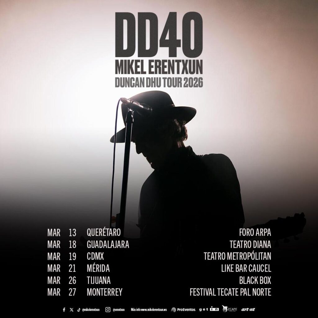 Mikel Erentxun regresa a México con una gira que será mucho más que un recorrido por distintos escenarios: será un viaje emocional a través de cuarenta años de historia, memoria y canciones que marcaron a varias generaciones. El Duncan Dhu Tour 2026 llegará al país como una celebración profunda y luminosa del legado de la banda donostiarra, un homenaje vital que Erentxun emprende en solitario, pero acompañado por la huella imborrable que Duncan Dhu dejó en la música en español. Sobre el escenario lo acompañarán Rubén Caballero en la guitarra, Mikel Azpiroz en los teclados, Fernando Neira en el bajo e Igor Telletxea en la batería, un ensamble que dará vida a los clásicos con la elegancia y la fuerza que merecen.