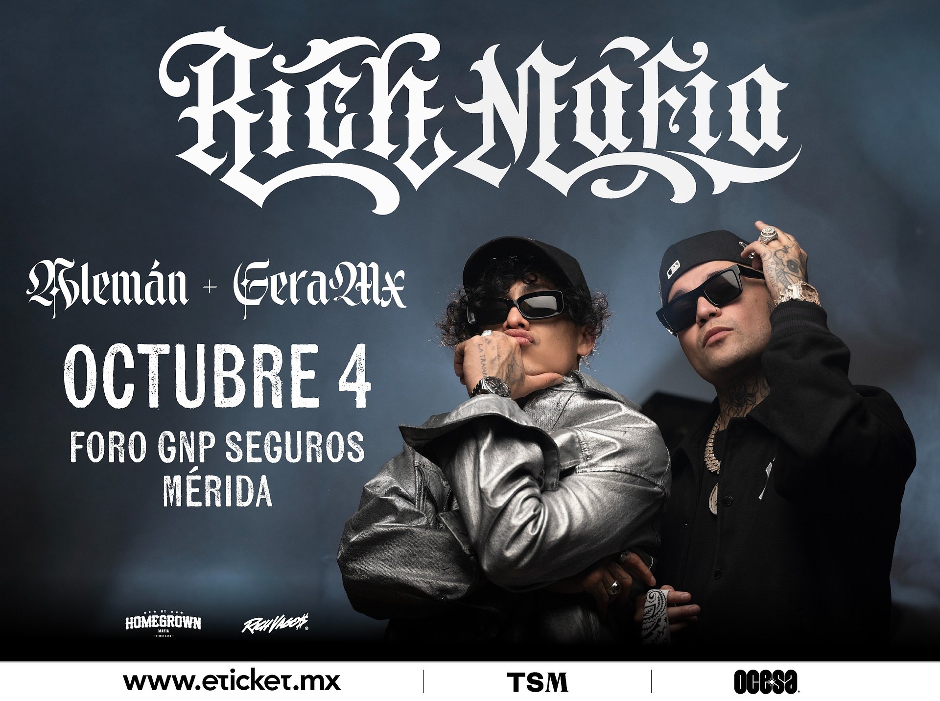 Tras arrasar con su estilo incendiario en la escena del hip hop, Rich Mafia, el proyecto que ha revolucionado el género en México, aterriza en Mérida para hacer vibrar el escenario del Foro GNP Seguros. Este 4 de octubre, Alemán y Gera MX se reencontrarán con su público y soltarán rimas letales en una noche que promete ser un auténtico bombazo.