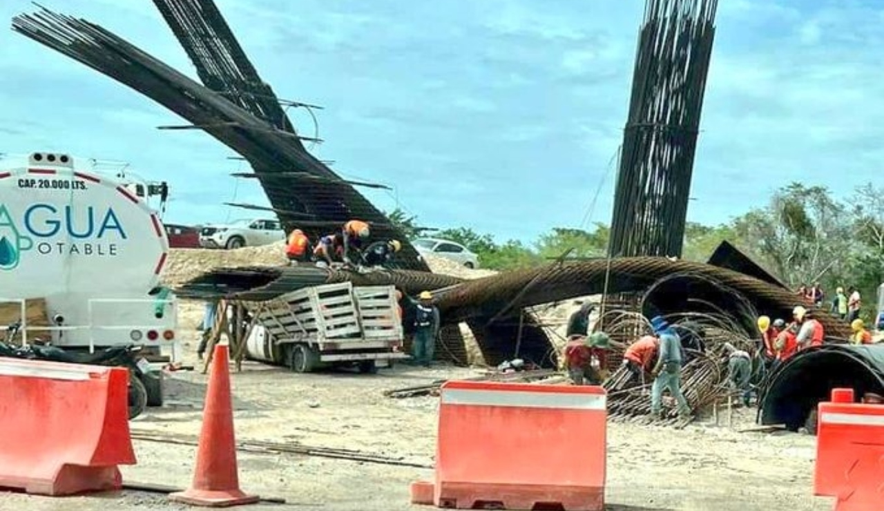 Una sección de un puente en construcción del tramo 7 del Tren Maya colapsó tras las intensas lluvias provocadas por el potencial Ciclón Tropical Uno.