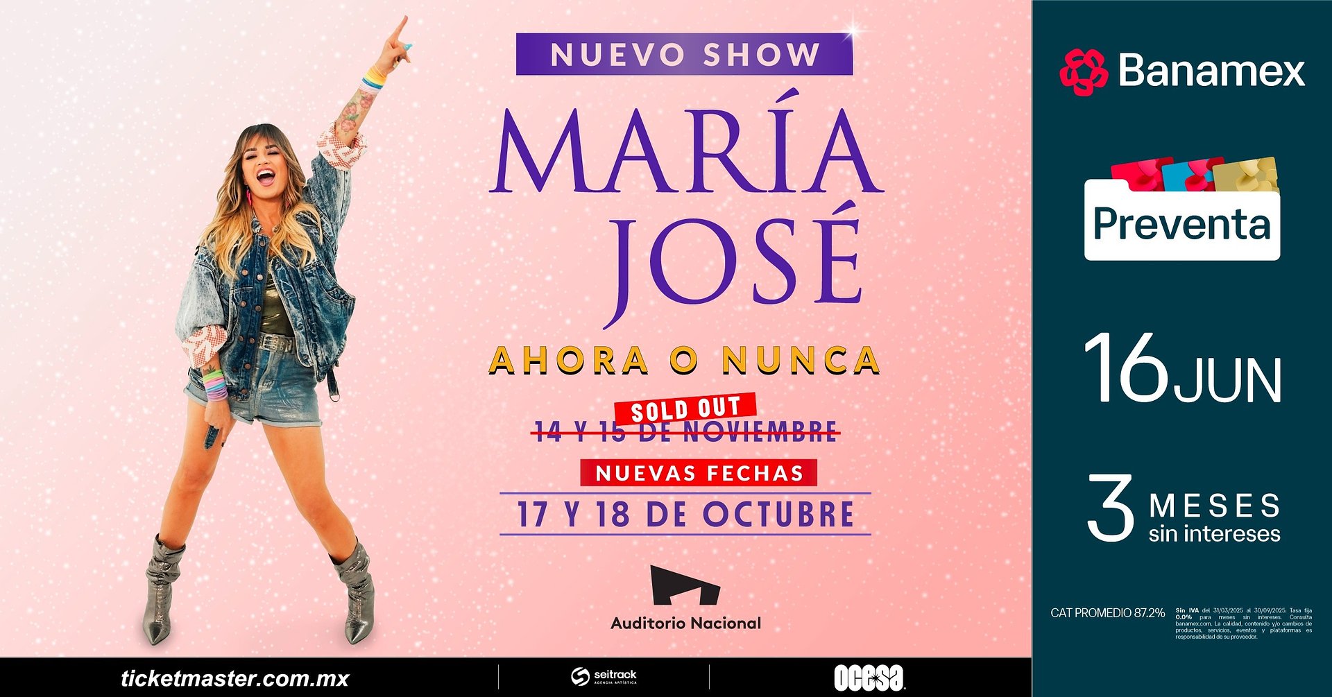 Tras agotar sus dos primeras presentaciones en Auditorio Nacional en un par de días, La Josa demuestra de nueva cuenta, porqué es una de las voces más poderosas del Pop latino. A petición del público, se suman un par de shows de su impactante gira Ahora o Nunca, con la que celebra el lanzamiento de su nuevo EP y repasa los éxitos que han marcado su carrera.