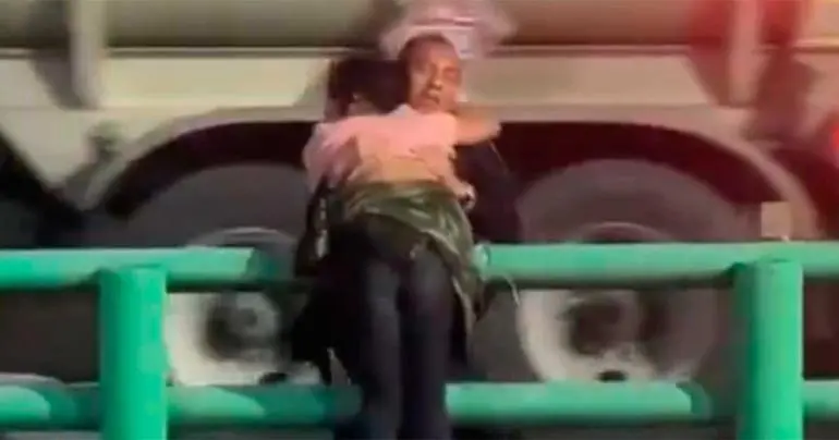 A través de un video difundido en redes sociales se aprecia a la fémina que se encontraba en la cornisa del paso a desnivel ubicado en el cruce de la avenida San Antonio Abad y la calle Lucas Alamán, en la colonia Obrera, cuando un policía capitalino la aborda y comienza a dialogar con ella.