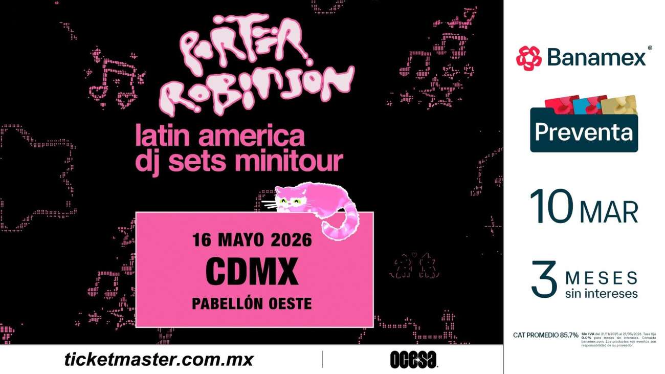 El reconocido productor, DJ y cantante, Porter Robinson, uno de los artistas más influyentes del panorama electrónico global, se presentará en el Pabellón Oeste para presentar un show único en su especie. Después de conquistar el Corona Capital en el 2024 y del lanzamiento de su aclamado álbum Smile! 😀 en el mismo año, el artista continúa consolidando su impacto con presentaciones que han reunido a miles de fans alrededor del mundo.