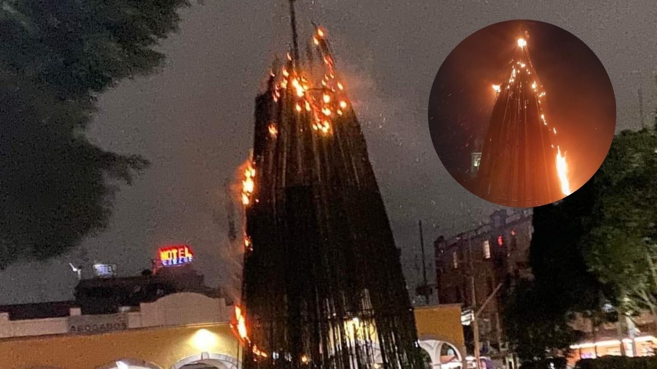 Se incendia árbol de navidad en la explanada de Tlalnepantla