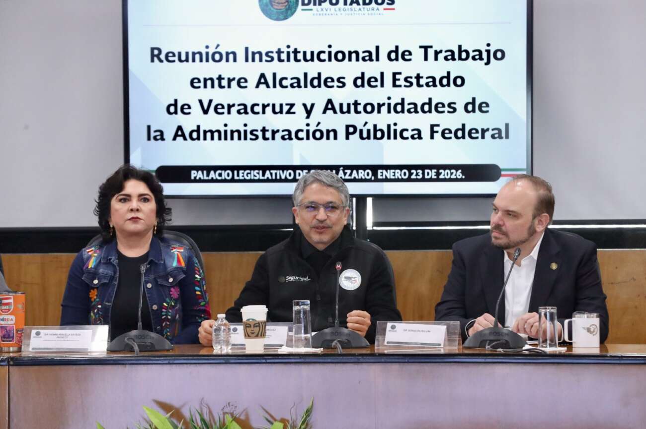 Palacio Legislativo de San Lázaro, XX-01-2026.- El Grupo Parlamentario de MC, encabezado por su coordinadora, la diputada Ivonne Ortega Pacheco, realizó una reunión entre alcaldesas y alcaldes de Veracruz, emanado de ese partido, y autoridades de la Administración Pública Federal, con el propósito de abrir un espacio para la gestión y atención en la solución de las problemáticas en los municipios de la entidad.