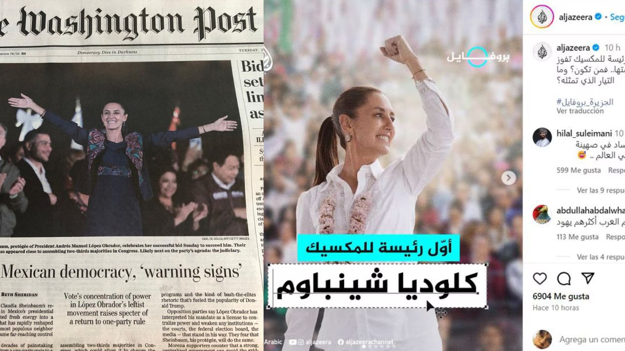 Al Jazeera La televisora qatarí cubrió el triunfo de Sheinbaum en sus transmisiones y redes sociales, publicando una foto de la nueva presidenta electa de México.