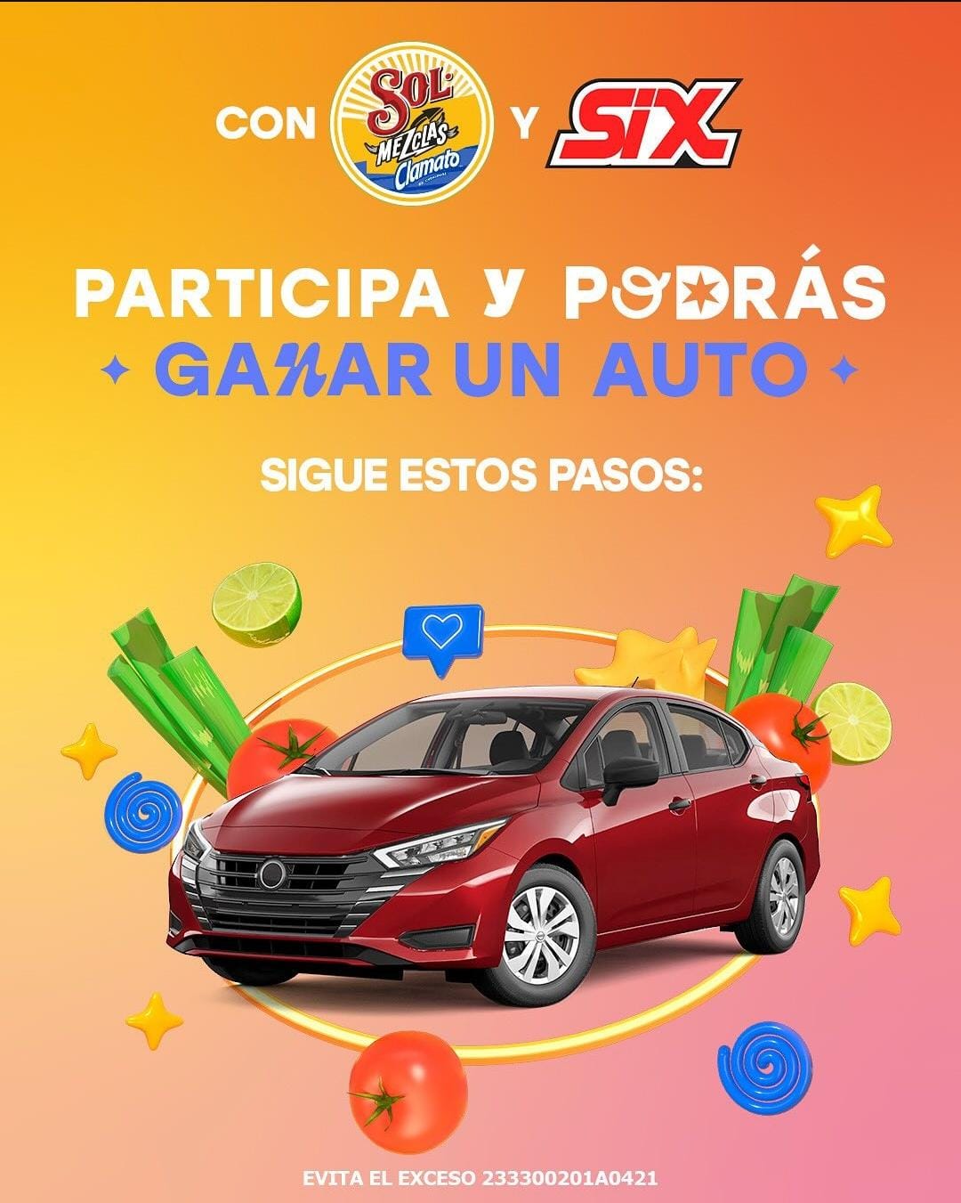 Como parte de su compromiso por seguir ofreciendo experiencias significativas a sus consumidores, Sol Mezclas en conjunto con Tiendas Six, lanzan una iniciativa en la que quienes disfrutan de Sol Clamato podrán participar por la oportunidad de ganar un auto nuevo.