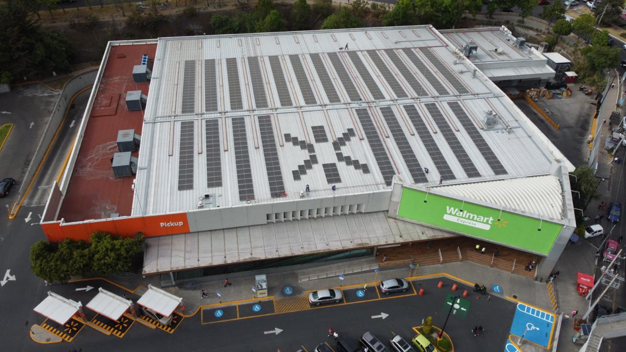Por ejemplo, la tienda Walmart ubicada en Santa Fe, Ciudad de México, cuenta con un sistema solar en el techo sin rieles de 244.4 kW con el logo de la «chispa» de Walmart en el techo, que representa la chispa de inspiración que llevó al fundador de la tienda a crear su primera tienda, con cada rayo de la chispa se representa uno de los valores o principios de la empresa. Además, Walmart en Chihuahua, México, cuenta con un sistema solar en el techo sin rieles de 500 kWp con la forma del nombre de su empresa.